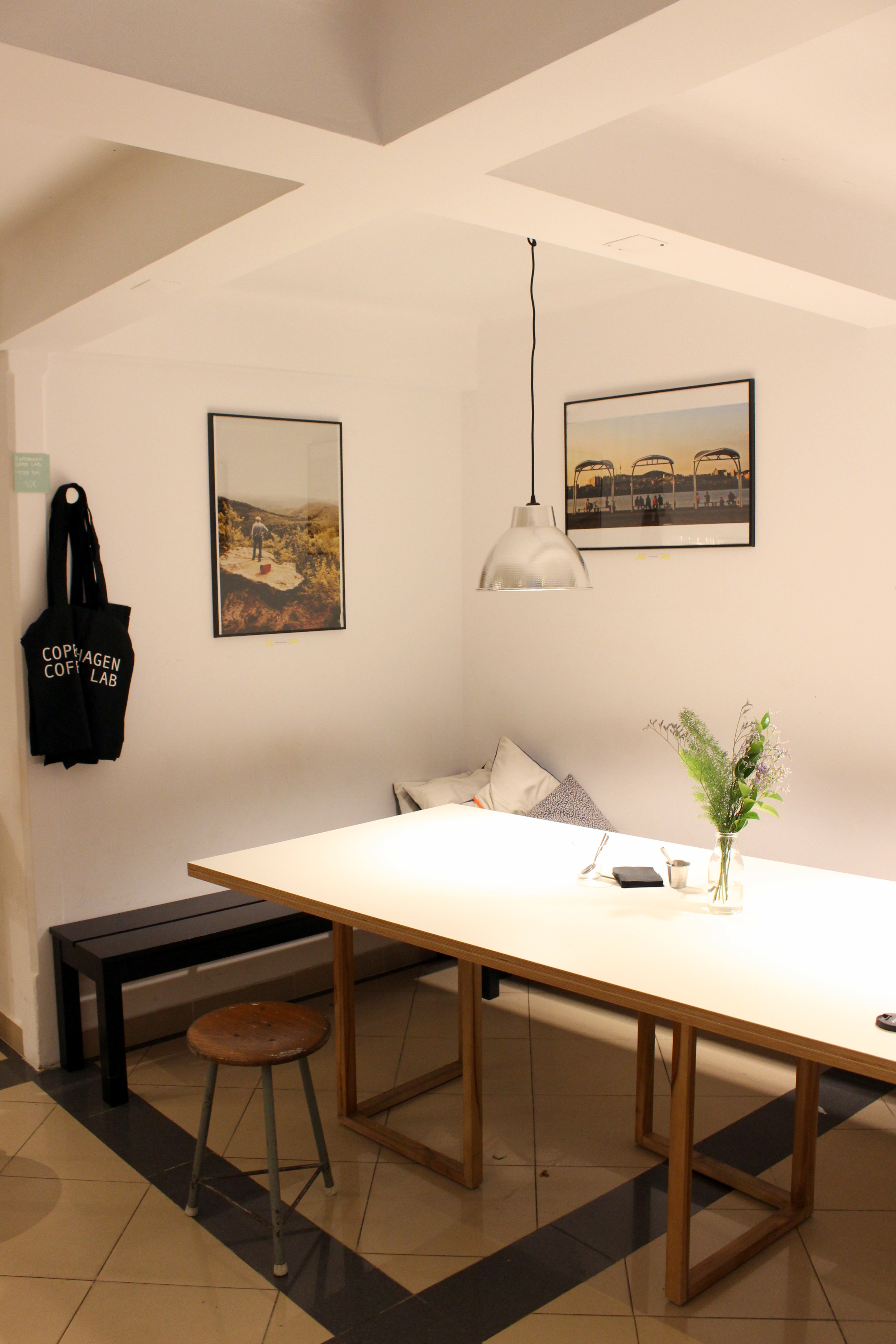 Finally, there is something to be said for the decoration, which is an attempt at exploring the limits of minimalism. White is the predominant color and whereas it might seem a little bit too clean, it does provide a nice, blank canvas for not only the strong-flavoured coffee but also for the exhibitions which every two months or so gives the opportunity to a new artist to promote and showcase their works.