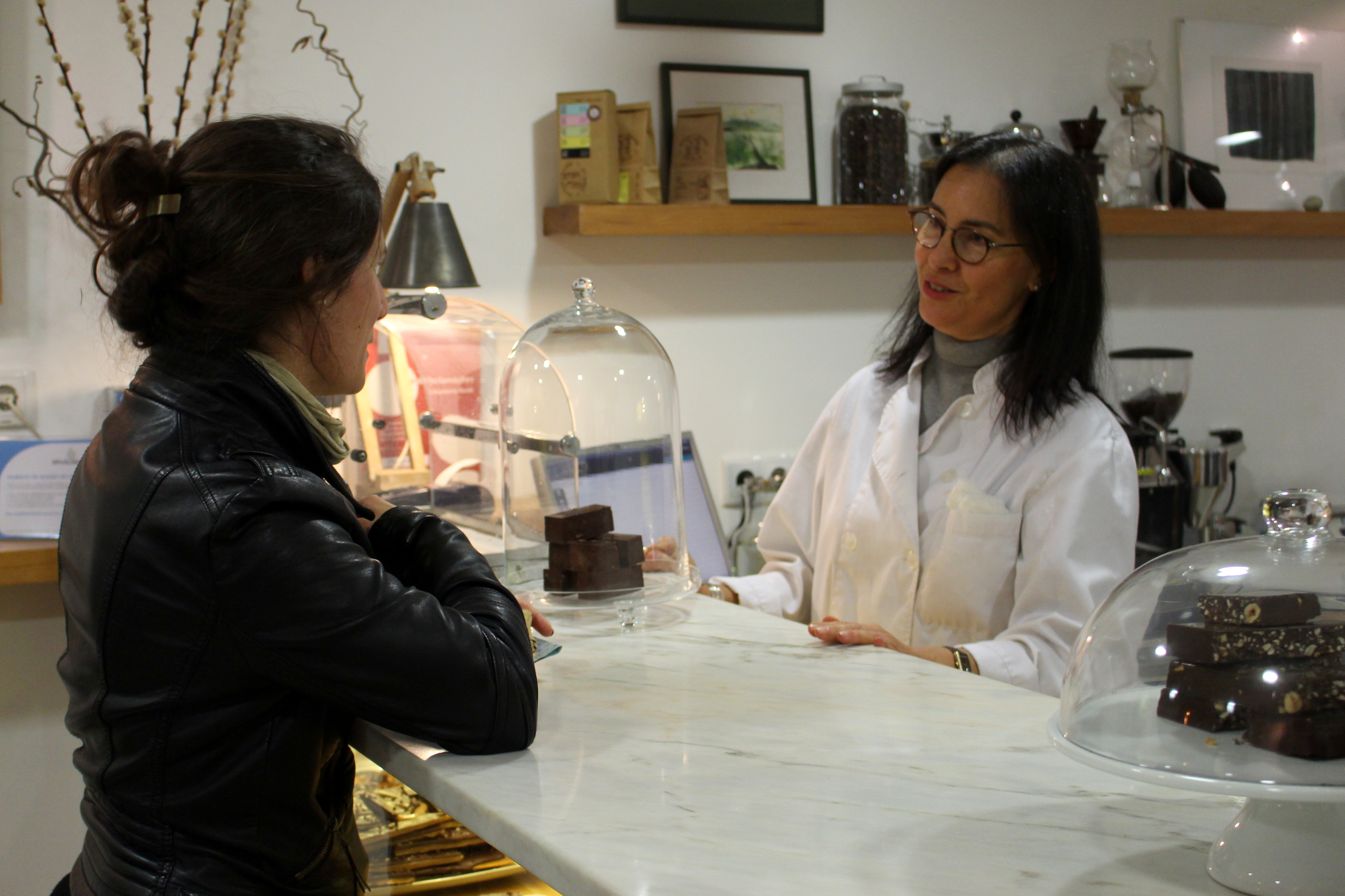 All of the effort is well worth it. The coffee is wonderful, not as lightly roasted as the beans in Copenhagen Coffee Lab and even darker than the beans of Fábrica Coffee Roasters. It is smokey, dark, on the right side of bitter and a perfect accompaniment to the chocolate, of which they give you a free piece to accompany your espresso or cappuccino. They have several dark chocolate combinations, from hazelnuts (my favourite) to sea salt and pepper to salty butter caramel or pure 80% chocolate with cacao nibs in it. Even though for our taste the chocolate is not the best in the world (that prize would most probably go to Wille’s Cocoa…), we find that the chocolate flavour could be more complex and we generally prefer to eat chocolate pure as it is, but it’s a lovely treat nevertheless and probably the best chocolate that you’ll find in Portugal.